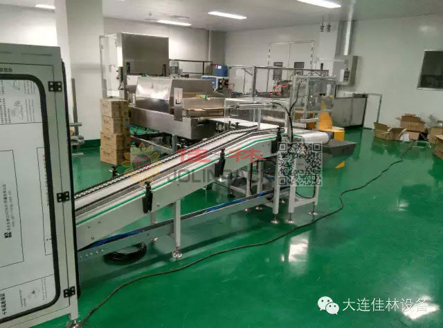 1) 產品經熱封膜機后,由對接輸送機輸送至裝箱機;